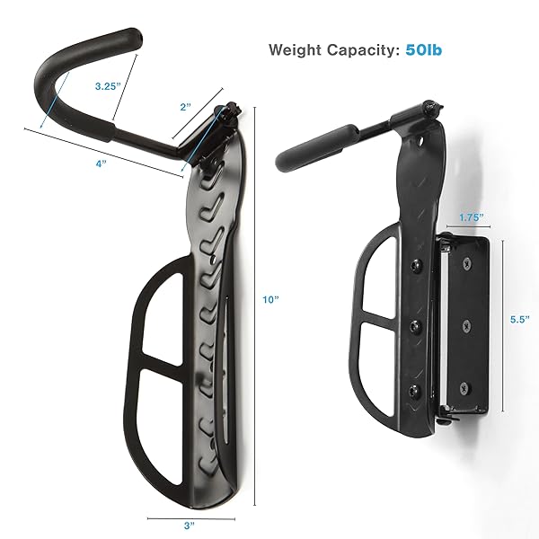 The ultimate solution for your bike storage garage needs –Our swivel bike wall mount is designed to maximize space and provide easy access, making it best way you store your bikes. The swivel design allows the bike wall mount to rotate 170 degrees, making it incredibly convenient to hang and retrieve your bike without any hassle. Our swivel bike wall mount offers unparalleled ease of use and versatility, ensuring that your bike is always ready for your next ride. Constructed from heavy-duty steel, this garage bike rack wall mount is built to last. The robust materials and powder-coated finish make it resistant to rust and weather, ensuring longevity and reliability. Each bike wall hanger can support up to 50 lbs, making it suitable for a wide range of bike types, including mountain bikes, road bikes, and more. This durability ensures that your bike hangers for garage use will provide a safe and secure storage solution for years to come. All the fixings are included, and the straightforward design allows you to securely attach the bike wall hanger directly to your garage wall. Whether you’re looking to organize a cluttered garage or create a dedicated bike rack garage area, this product is the perfect choice. Transform your garage into a well-organized and efficient space with our bike hooks for garage storage.